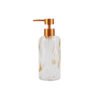 Glass Soap Dispenser with Golden Pump and White-Gold Pattern, Elegant Bathroom Ornament and Lotion Bottle for Modern Home Décor