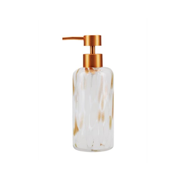 - ★Chic Glass Design – White glass with gold flecks and a matching gold pump creates a luxurious ornament look.