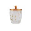 Home - HOME DECOR - Ornament - Glass Storage Jar with Golden Lid and Speckled White-Gold Pattern, Decorative Container Ornament for Bathroom, Vanity, or Kitchen Use