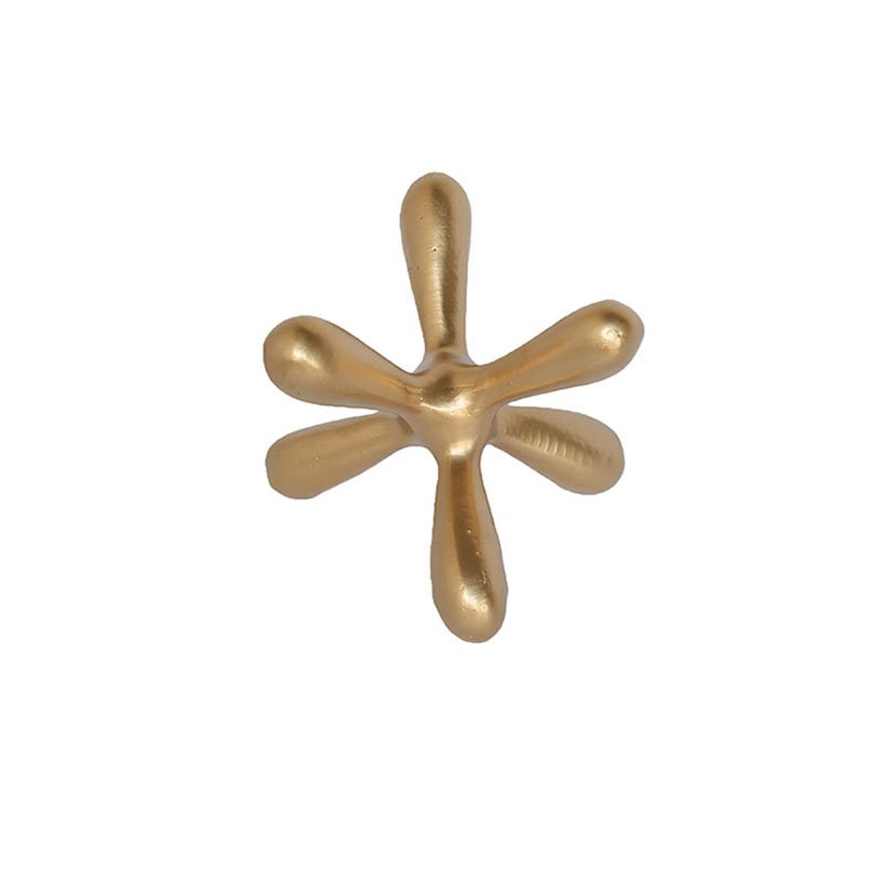 • This striking Gold Geometric Ornament features an abstract six-pronged Jack shape, where each arm extends with smooth, rounded curves, breaking away from the rigidity of traditional sculpture and exuding modern artistic flair. The surface is finished with a refined matte or satin gold treatment, giving it a premium texture that avoids harsh reflection and allows it to perfectly integrate into various home decor settings. Its unique three-dimensional structure and central convergence point allow it to exhibit a dynamic, balanced beauty from every viewing angle.