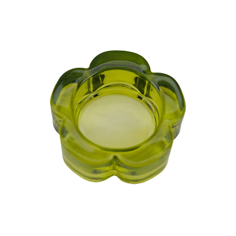 green Flower Shaped Crystal Glass Candle Holder, 6.3×6.3x2cm Decorative Tealight Holder, Romantic Table Centerpiece for Bedroom, Wedding, and Party Décor