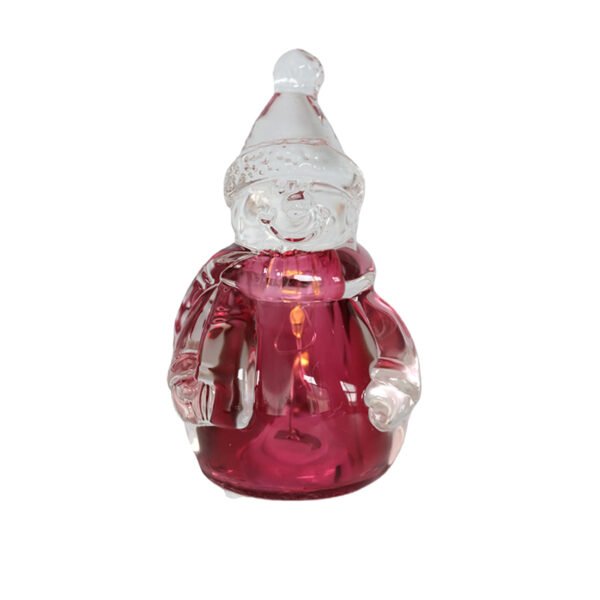 Handcrafted Art Glass Snowman Christmas Ornament with Internal LED Glow, Festive Red Crystal Figurine for Holiday Tabletop Display, Charming Winter Wonderland Collectible for Seasonal Home Decor and Gifting
