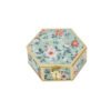 Hexagonal Glass Jewelry Box with Gold Metal Frame, Floral Pattern Lid and Decorative Bow Lock, Small Jewelry Box for Rings, Earrings and Trinkets, Elegant Box Jewelry Boxes for Women