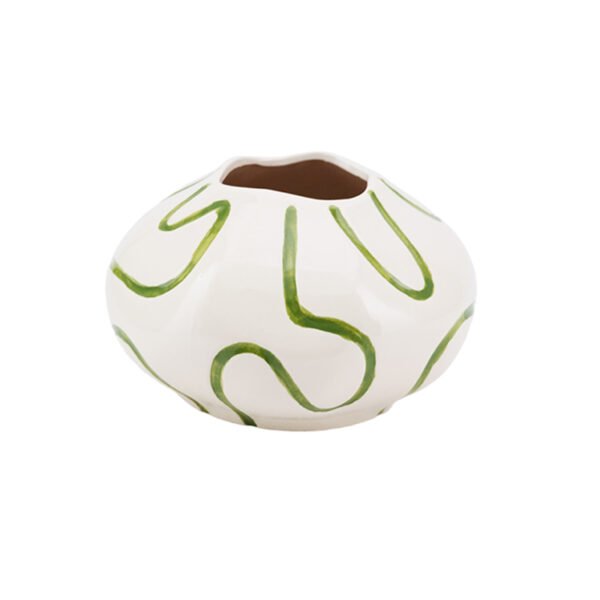 - ★Modern Artistic Design – This round ceramic vase features elegant green abstract line patterns, making it a unique decorative accent.
