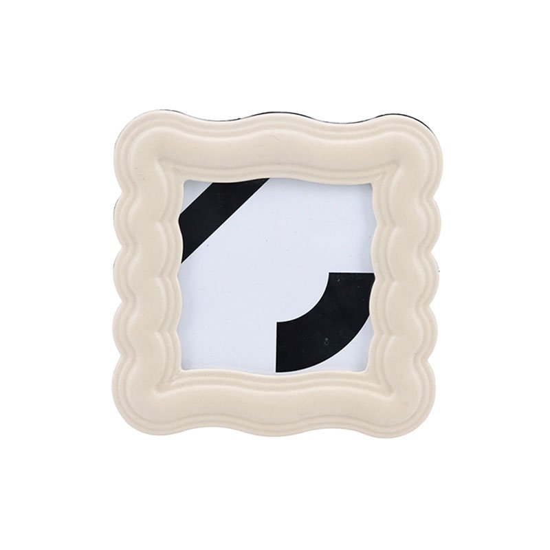 - ★This is a square photo frame with wavy, scalloped edges, featuring a soft beige color that gives a simple yet warm appearance. Perfect for displaying photos or artwork on a desk, bedside table, or living room. Code LJ124-137-036, size 16.2×1.5×21.3 cm, weight 0.398 kg.