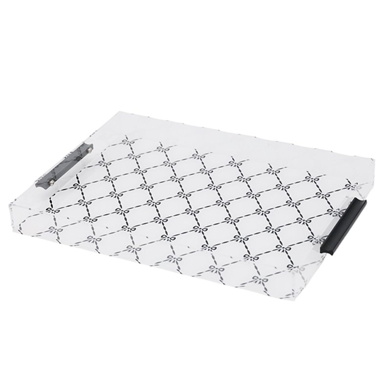 large-sized Bow-Patterned Acrylic Serving Tray with Black Handles, Decorative Organizer Tray for Home, Stylish Vanity & Coffee Table Tray