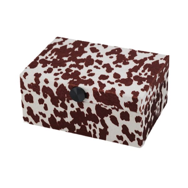 • Trendy Cowhide Look: This jewelry box features a unique cowhide spotted design, blending modern style with rustic charm, making it a statement piece for your vanity or desk.