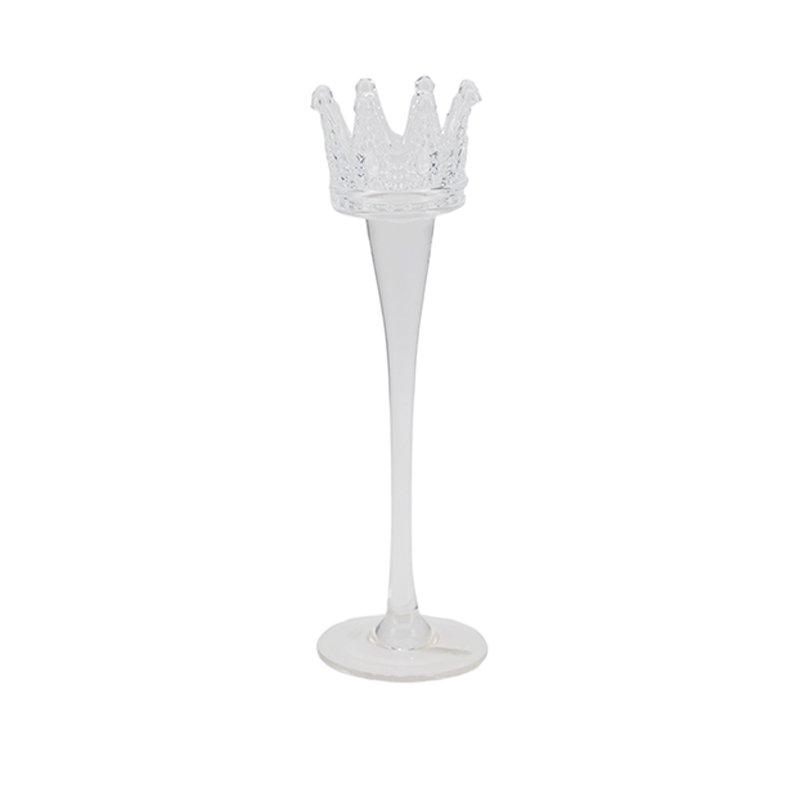 Home - HOME DECOR - Candle Holder - large-sized Creative Crown Shape Glass Candle Holder, Clear Tall Stem Glass Candle Stick Holder, Luxury Wedding Party Decoration, Perfect for Holidays, Events, and Home Centerpiece