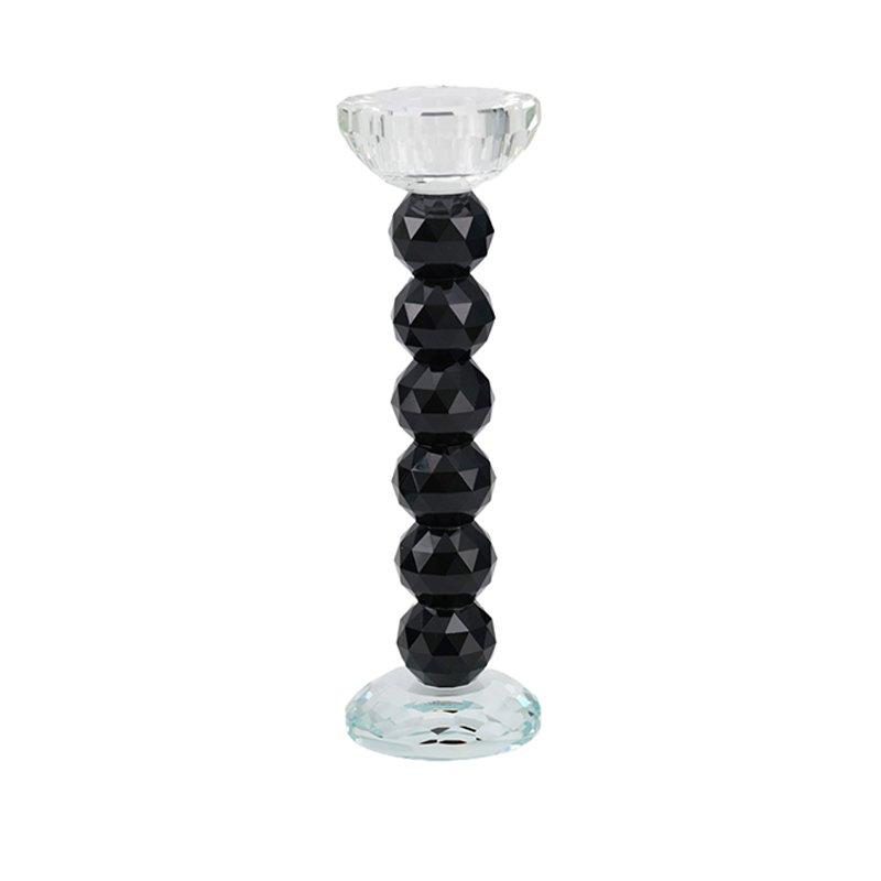 large-sized Crystal Candlestick Holder, Black and Clear Geometric Design Candle Holder for Home Decor, Wedding, Dinner Table Centerpiece