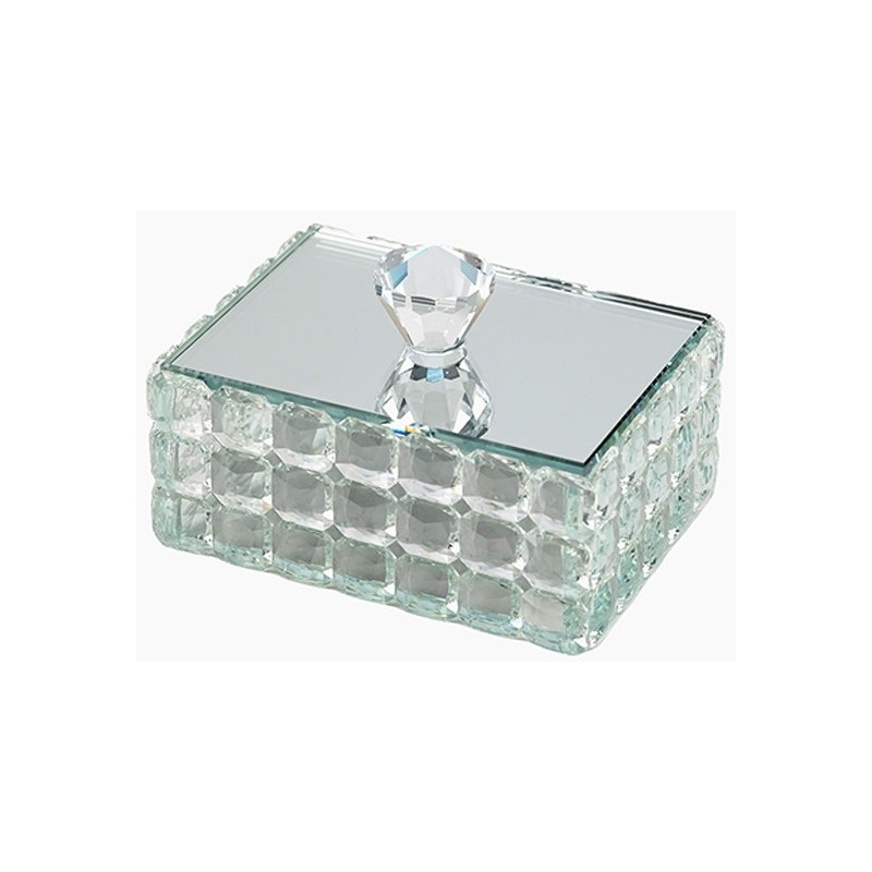 - ★Elegant Crystal Design — This exquisite jewelry box features a diamond-cut glass texture that sparkles beautifully under light. The mirrored lid adds a touch of sophistication, making it perfect as both jewelry box packaging and a display piece on your vanity.