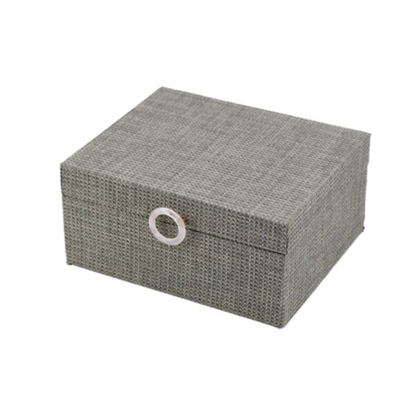 • Elegant Fabric Design – This jewelry box is crafted with premium gray fabric and a unique round ring handle, featuring a simple yet stylish look that fits perfectly on a dresser, vanity, or bedside table.