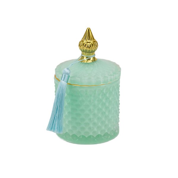 Elegant blue Glass jewelry box with Diamond Pattern, Gold Decorative Lid, and Tassel Ornament – Vintage Style Storage Container for Home Décor, Jewelry, Candy, or Small Items