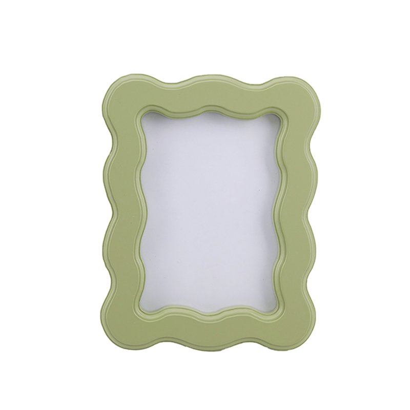 Green Wavy Edge Photo Frame, Decorative Tabletop and Wall Hanging Picture Frame, Modern Resin Frame for Home Décor