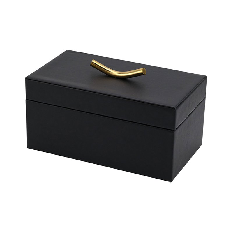 Home - HOME DECOR - Jewelry Box - large-sized Luxury Black Rectangular Jewelry Box with Gold Curved Handle, Leather-Texture Lid, Elegant Decorative Organizer for Jewelry Storage, Jewelry Box Packaging & Package Box for Jewelry