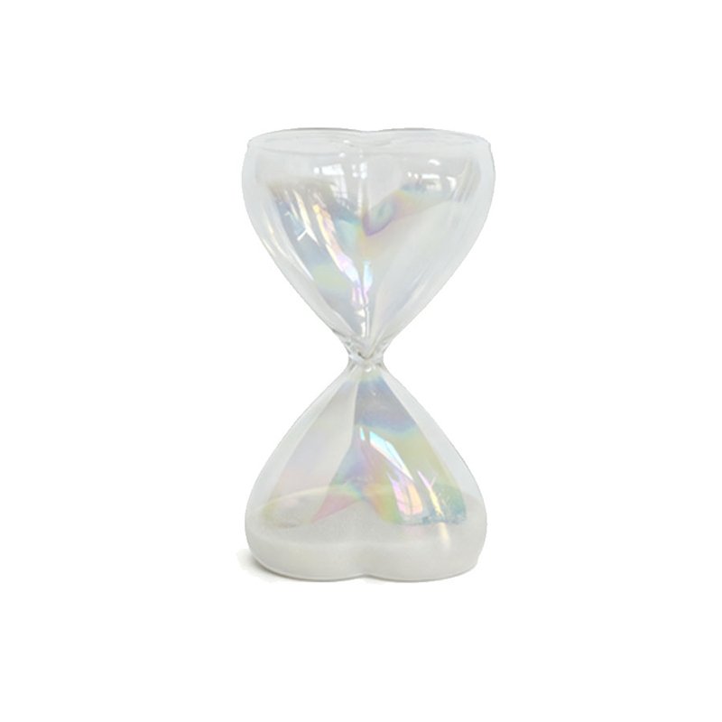 Home - HOME DECOR - Hourglass - large-sized Luxury Iridescent Heart-Shaped Glass Hourglass – Creative Romantic Sand Hourglass with White Sand, Exquisite Handcrafted Glass Hourglass Desktop Decor Art Piece, Modern Aesthetic Hourglass Sand Timer for Home Office Display, Premium Gift for Anniversaries & Valentine’s Day