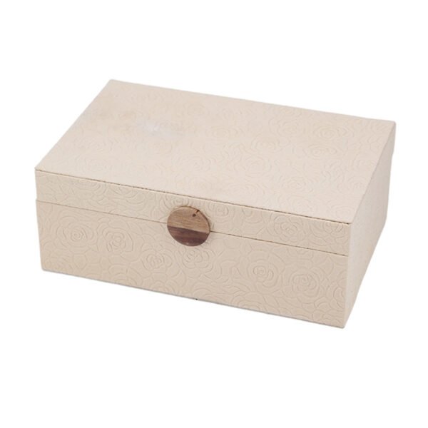 large-sized Luxury Leather Jewelry Box with Textured Finish and Round Golden Button, Elegant Organizer for Rings, Necklaces and Earrings