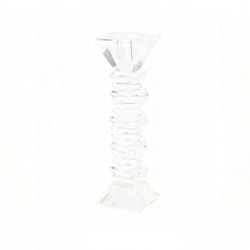 • Unique Stacked Geometric Facets & Crystal-Clear Physical Features- This crystal candle holder demonstrates the ultimate deconstructivist aesthetic in its visual structure: the main stem is composed of more than a dozen layers of irregularly stacked rhombic crystal plates, each precisely geometric-cut to present a staggered angular feel. The top features an inverted trapezoidal thickened crystal candle mouth with sharp, cool edge lines; the bottom utilizes a stable square stepped base to ensure balance during display. Crafted from high-clarity transparent material, every subtle facet produces brilliant refraction under light, appearing like a miniature ice crystal tower that reflects enchanting light and shadow transformations.