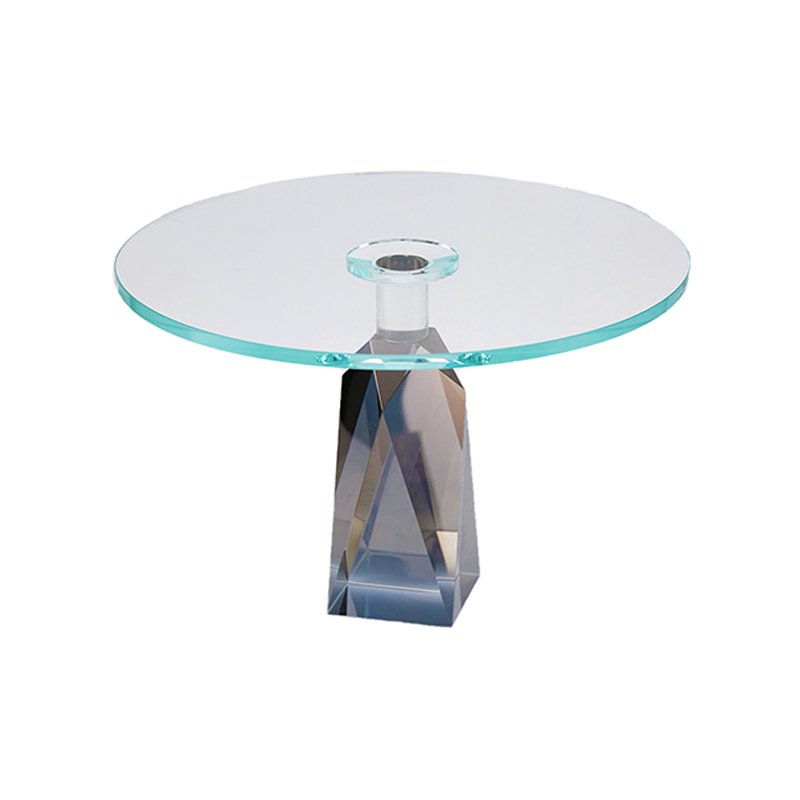 large-sized Round Glass Display Tray with Thick Clear Top and Faceted Crystal Pedestal Base, Modern Decorative Jewelry Tray & Serving Display Stand