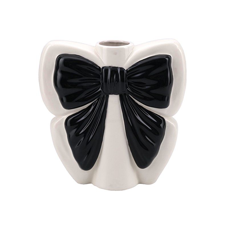 Home - HOME DECOR - Vase - large-sized Modern Cute Black and White Bowknot Shaped Ceramic Vase, Small Caliber Flower Vase, Delicate Desktop Decorative Vase, Girly Home Decor Art Piece