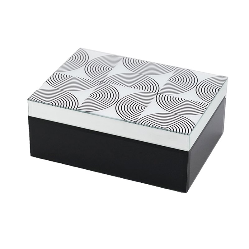large sized Modern Geometric Pattern Glass Decorative Box, Stylish Storage Organizer for Jewelry/Trinkets, Black & White Artistic Accent Piece for Home Decor