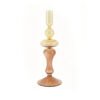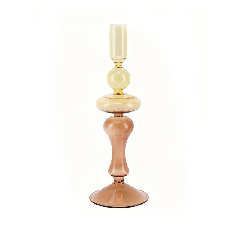 - ★This glass candle holder showcases a stunning modern artistic aesthetic, with its most prominent feature being the vertical stacking of various geometric glass spheres and disk-like structures, creating a rhythmic sense of layered beauty. The color palette features a sophisticated gradient design, transitioning naturally from a clear pale yellow at the top to a warm amber in the middle, and finishing with a stable deep brown base. This combination of transparent material and streamlined curves allows light to create enchanting refractions as it passes through the candle holder , making it an artistic focal point whether displayed alone or in pairs.