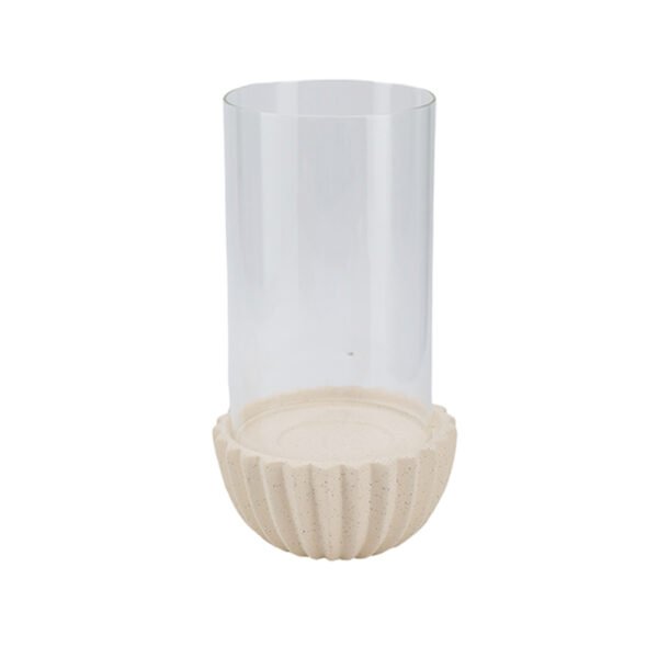 • This shop spring vase combines a frosted ceramic fluted base with a transparent cylindrical glass top, giving it a modern layered look. The design is stylish yet versatile, blending classic ceramic craftsmanship with contemporary transparency.
