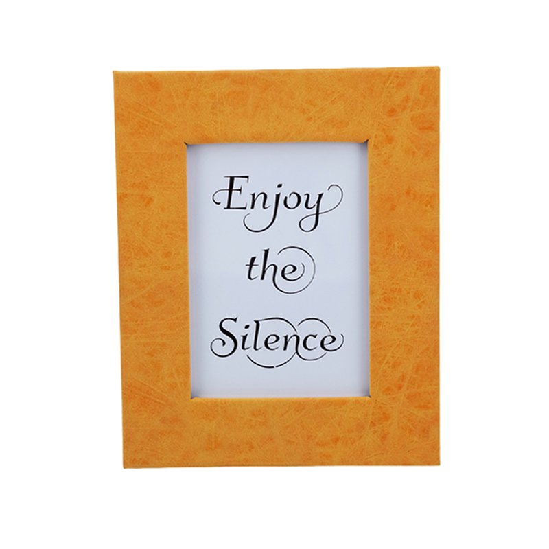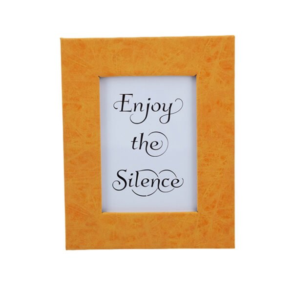 large-sized Orange Faux Leather Photo Frame with “Enjoy the Silence” Quote, Decorative Picture Frame for Home & Office Bullet Points