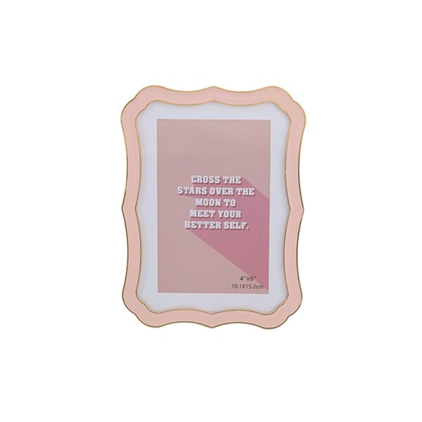 - ★This pink photo frame (Model LJ175-137-002) measures 14.5×0.7×19.5cm and weighs about 0.257kg. Featuring an elegant wavy-edge design in a chic color, it’s perfect for displaying 3×5 inch photos such as family portraits, personal pictures, or art prints. Ideal for desks, bedside tables, or living rooms, it adds a cozy and stylish touch to any space.