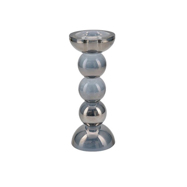 large-sized Silver Glass Candle Holder with Double Sphere Stacked Design, Reflective Metallic Finish Decorative Candlestick Holder for Home and Events