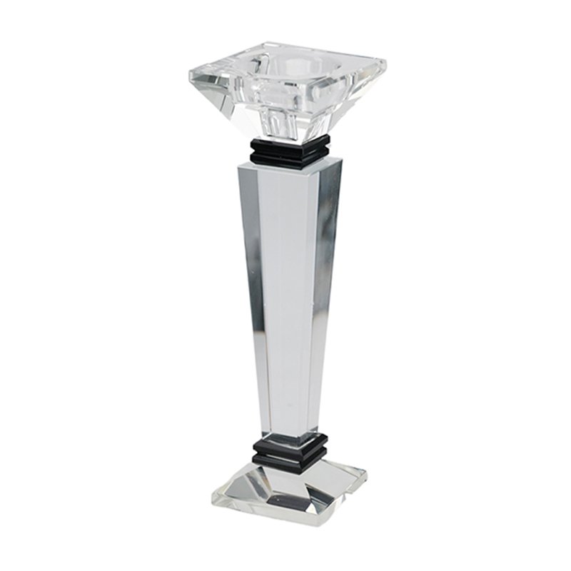 - ★Stunning Faceted Crystal Design | This candle holder features a tall, angular crystal stem with layered geometric cuts that catch and reflect light beautifully. The black base contrasts sharply with the clear crystal, creating a luxurious centerpiece for any table.