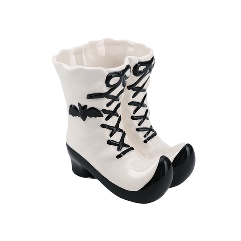 • Whether holding small blooms or serving as a standalone decor piece, this vase is a standout flower vase with its playful boot design and black-and-white aesthetic.