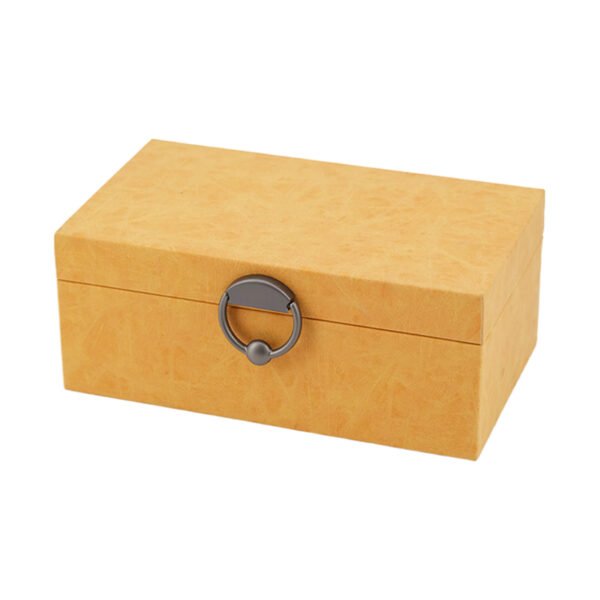 large-sized Yellow Faux Leather Jewelry Box with Metal Ring Clasp, Organizer Box for Girls’ Accessories