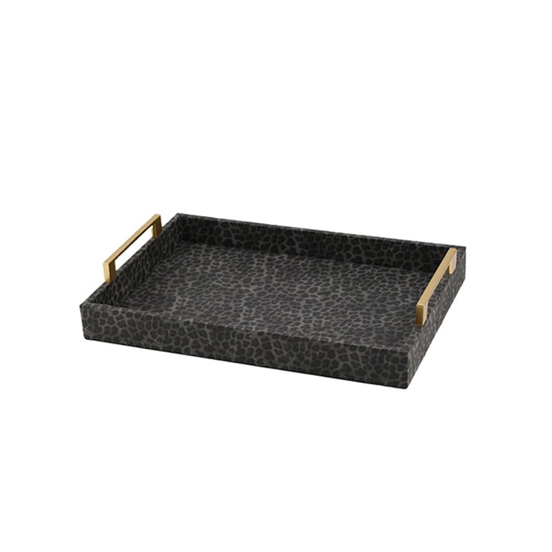 Home - HOME DECOR - Tray - leopard print rectangular tray with metal handles