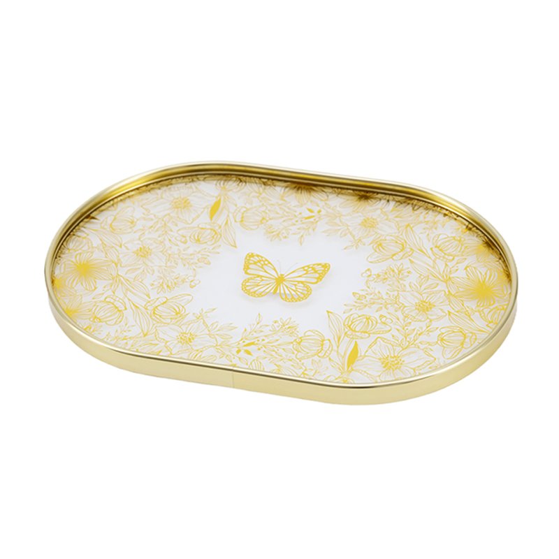 Home - HOME DECOR - Tray - Luxury Oval Gold Butterfly Floral Tray, Decorative Metal Serving Tray with Elegant Butterfly Design, Golden Vanity Tray for Jewelry, Makeup, Perfume, Coffee Table, or Home Décor