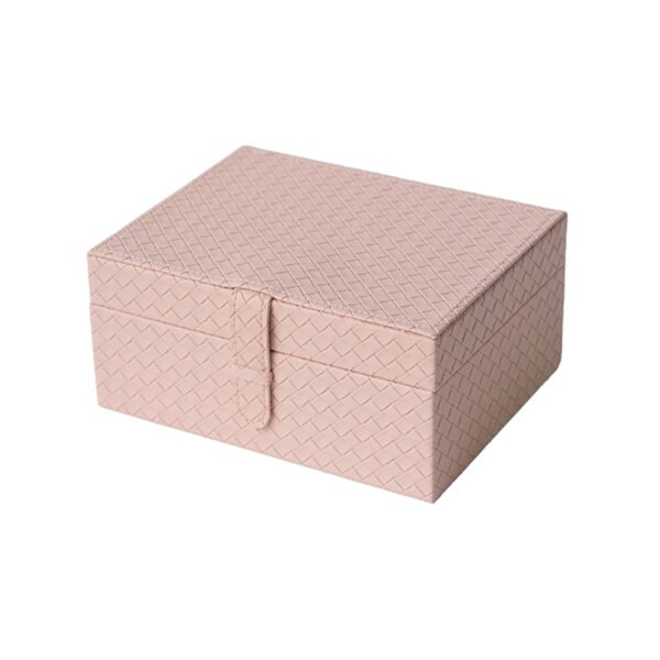 - ★Sophisticated Pink Woven Texture & Sturdy Silhouette- This PU jewelry box exudes modern luxury with its soft, delicate dusty rose pink tone and a surface covered in a striking 3D cross-woven texture. It features a classic rectangular silhouette with clean, sharp edges, complemented by a wide matching buckle on the front that provides secure storage while adding a fashionable flair reminiscent of high-end leather goods.