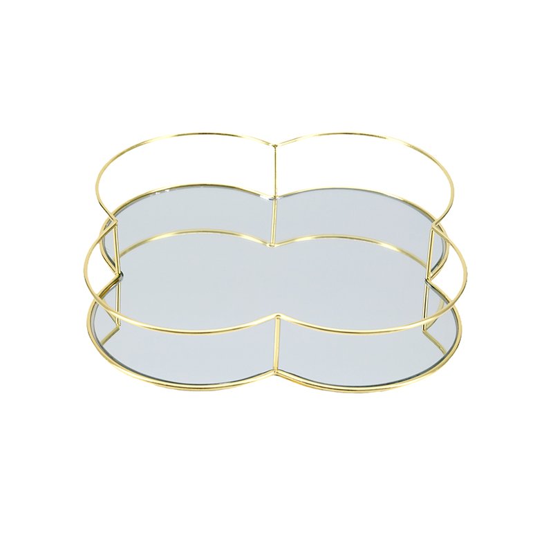 Home - HOME DECOR - Tray - small-sized Gold Metal Double – Loop Frame Decorative Tray with Mirror Surface, Stylish Tray for Vanity, Perfume, Jewelry