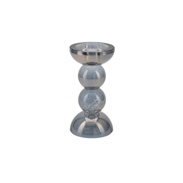 middle-sized Silver Glass Candle Holder with Double Sphere Stacked Design, Reflective Metallic Finish Decorative Candlestick Holder for Home and Events