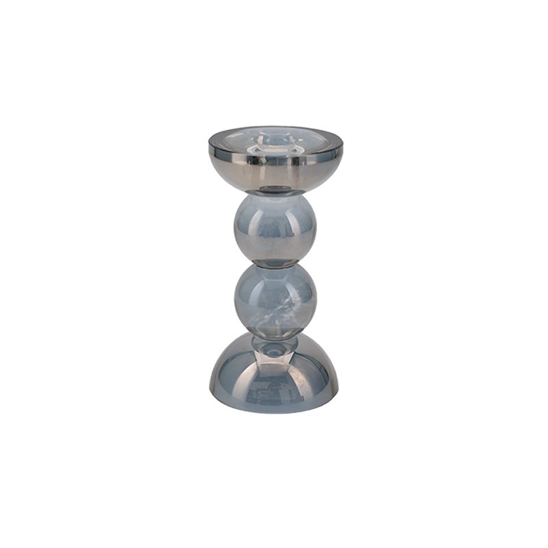 Home - HOME DECOR - Candle Holder - middle-sized Silver Glass Candle Holder with Double Sphere Stacked Design, Reflective Metallic Finish Decorative Candlestick Holder for Home and Events