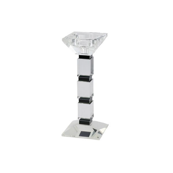 - ★Sophisticated Layered Crystal Design — This candle holder features stacked transparent glass cubes with subtle black inserts, forming a tall and graceful pillar design.