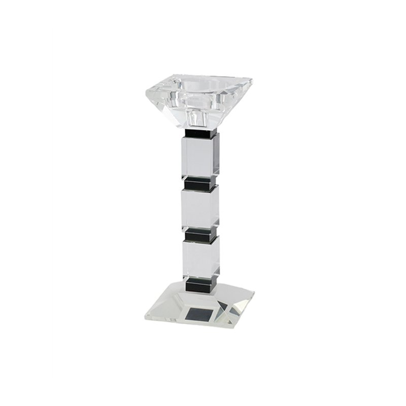 Home - HOME DECOR - Candle Holder - middle-sized Tall Crystal Candle Holder with Black Accents, Square Layered Design Candlestick Holder for Table Centerpiece, Elegant Candle Holder for Wedding or Home Decor