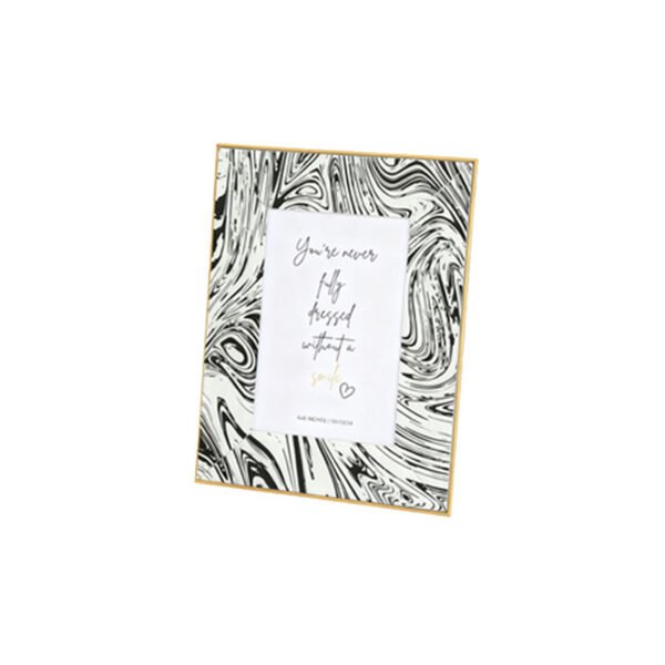 • Dynamic Visual Features & Marble Texture Artistry- This artistic frame features an eye-catching abstract fluid texture design, with interwoven black and white lines resembling flowing ink patterns that create a dynamic visual hierarchy across the frame surface. The outer edge is encased in an ultra-fine bright gold border; this striking contrast between calm monochrome tones and luxurious gold imbues the product with a sophisticated modern urban aesthetic. The internal display area is perfectly proportioned to hold a standard 4×6 inch photograph, maintaining its unique sculptural presence whether displayed vertically or horizontally, making it a stunning tabletop photo frame.