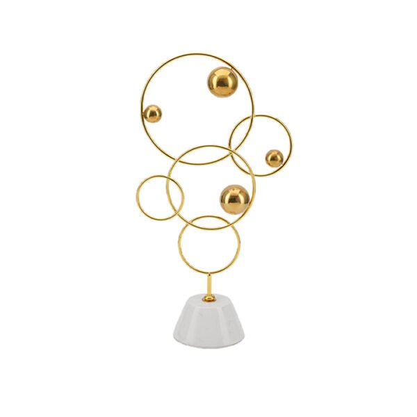 Home - HOME DECOR - Ornament - Modern Abstract Gold Metal Jewelry Stand with Geometric Circular Design, White Rectangular Base Jewelry Display Stands for Necklaces, Earrings, and Bracelets – Decorative Jewelry Holder Stand