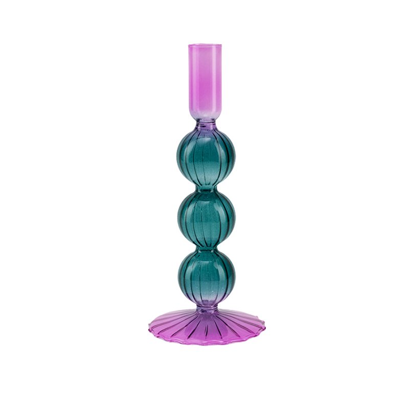 - ★Unique Morandi Color-Blocking & Triple Bubble Silhouette Design- This candle holder demonstrates high artistic tension in its visual construction: it features a rhythmic triple-stacked bubble body design with a strong sense of verticality. In terms of color, the designer boldly applied Morandi color-blocking aesthetics; the center body consists of three deep emerald green spheres, while the top candle socket and the radial disc base at the bottom are crafted in soft translucent purple. This interweaving of cool tones creates a serene and sophisticated artistic atmosphere.