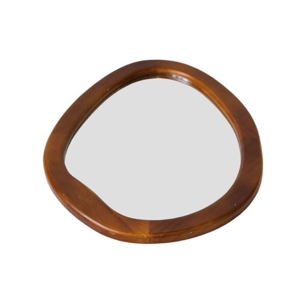 Modern Art Irregular Organic Shaped Solid Wood Wall Mirror, Mid-Century Minimalist Brown Wooden Frame Decorative Mirror for Entryway, Living Room & Bedroom