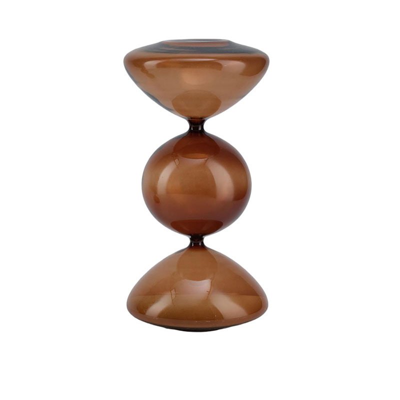 - ★Unique Triple-Sphere Geometric Silhouette & Amber Translucent Texture Appearance Features- he main body features three vertically stacked spherical chambers of varying sizes: the top and bottom are flattened semi-elliptical orbs, while a perfectly round sphere in the center acts as a visual pivot, creating a graceful, tiered artistic silhouette. Crafted from premium dark amber glass, the piece boasts a rich, mellow color with exceptional light transparency, casting silken amber shadows that transform it from a mere hourglass into a sophisticated glass sculpture capable of elevating any spatial atmosphere.