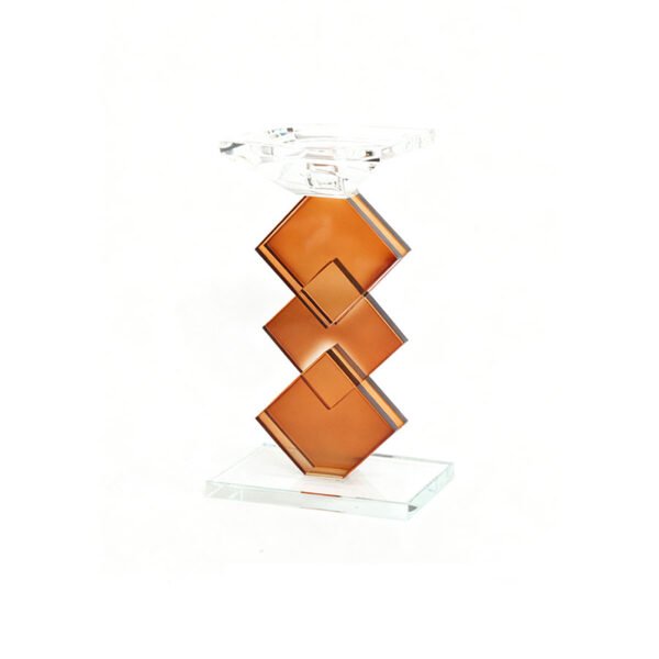 - ★Geometric Layered Structure & Warm Amber Color Features- This masterpiece showcases a striking modern deconstructive geometric structure, meticulously assembled from high-purity crystal glass. The top features a wide, transparent square crystal platform with a precise central indentation for secure candle placement; the midsection is composed of three angular, tilted amber-colored square crystals stacked in a rhythmic visual arrangement. The entire piece stands firmly on a thickened rectangular clear base, creating a refractive dance of clarity and amber hues under the light, resembling a sophisticated indoor art sculpture.