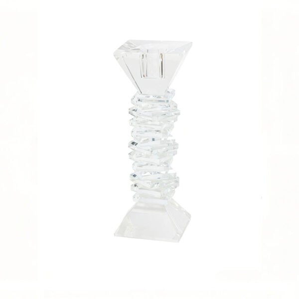 - ★Unique Stacked Geometric Facets & Crystal-Clear Physical Features- This crystal candle holder demonstrates the ultimate deconstructivist aesthetic in its visual structure: the main stem is composed of more than a dozen layers of irregularly stacked rhombic crystal plates, each precisely geometric-cut to present a staggered angular feel. The top features an inverted trapezoidal thickened crystal candle mouth with sharp, cool edge lines; the bottom utilizes a stable square stepped base to ensure balance during display. Crafted from high-clarity transparent material, every subtle facet produces brilliant refraction under light, appearing like a miniature ice crystal tower that reflects enchanting light and shadow transformations.