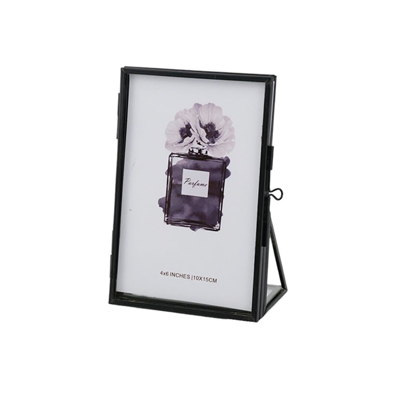 Home - HOME DECOR - Photo Frame - Modern Black Metal Rectangular Photo Frame with Clear Glass and Minimalist Stand, Elegant Tabletop Frame Picture Photo Display for Home and Office