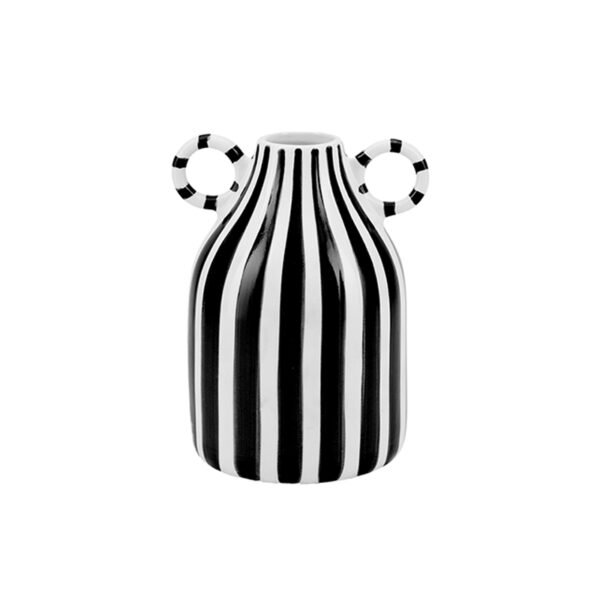 Home - HOME DECOR - Vase - Modern Black & White Striped Ceramic Vase with Double Ring Handles, 12.2×10.5×15.3cm Artistic Flower Vase for Home Decor, Stylish Accent Piece for Living Room/Bedroom