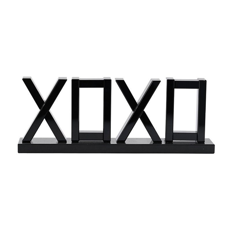 Home - HOME DECOR - Ornament - Modern Black “XOXO” Letter Sculpture on Rectangular Base, High-Gloss Decorative Resin Ornament for Shelf, Desk, Living Room Home Decor Accent, Contemporary Stylish Decorative Statue